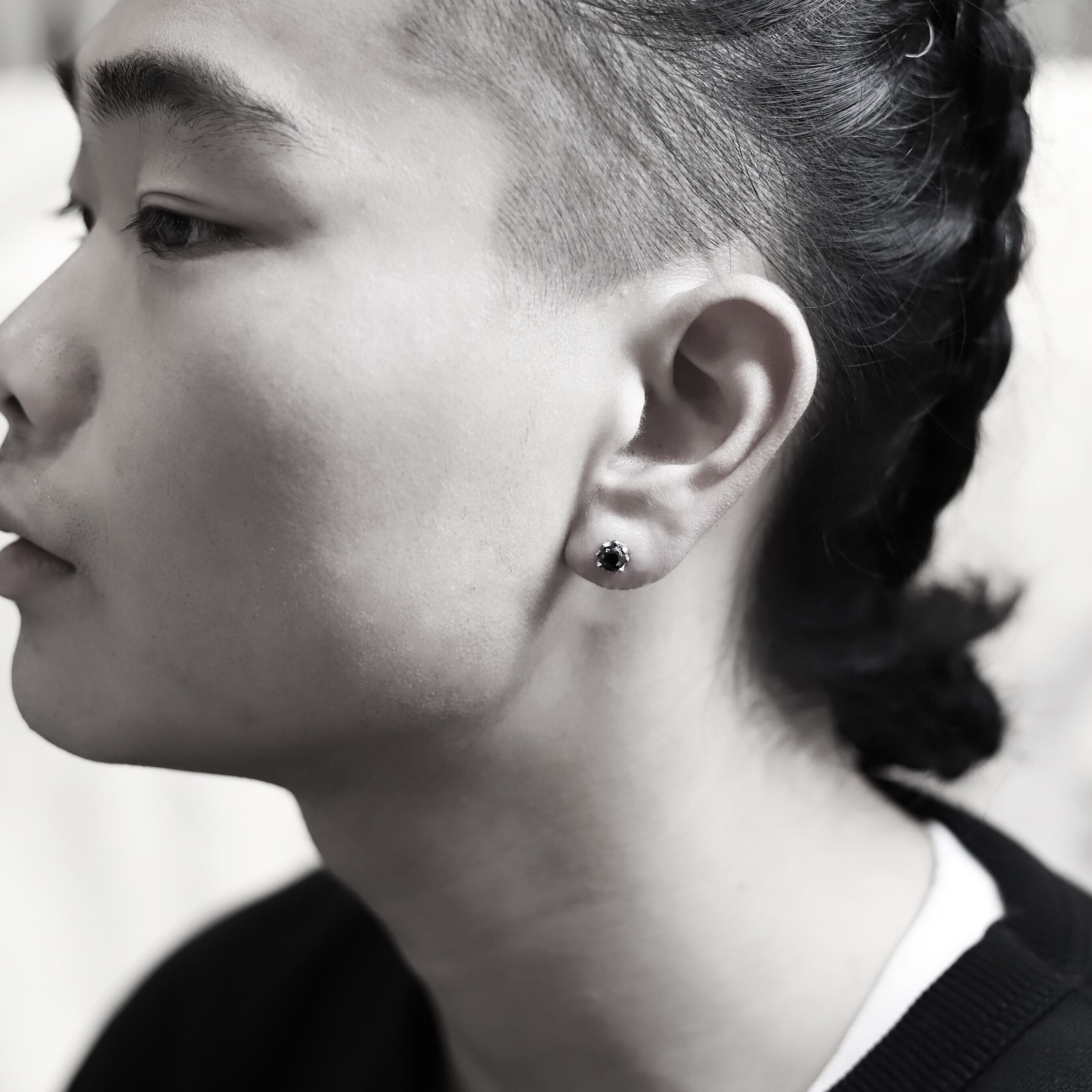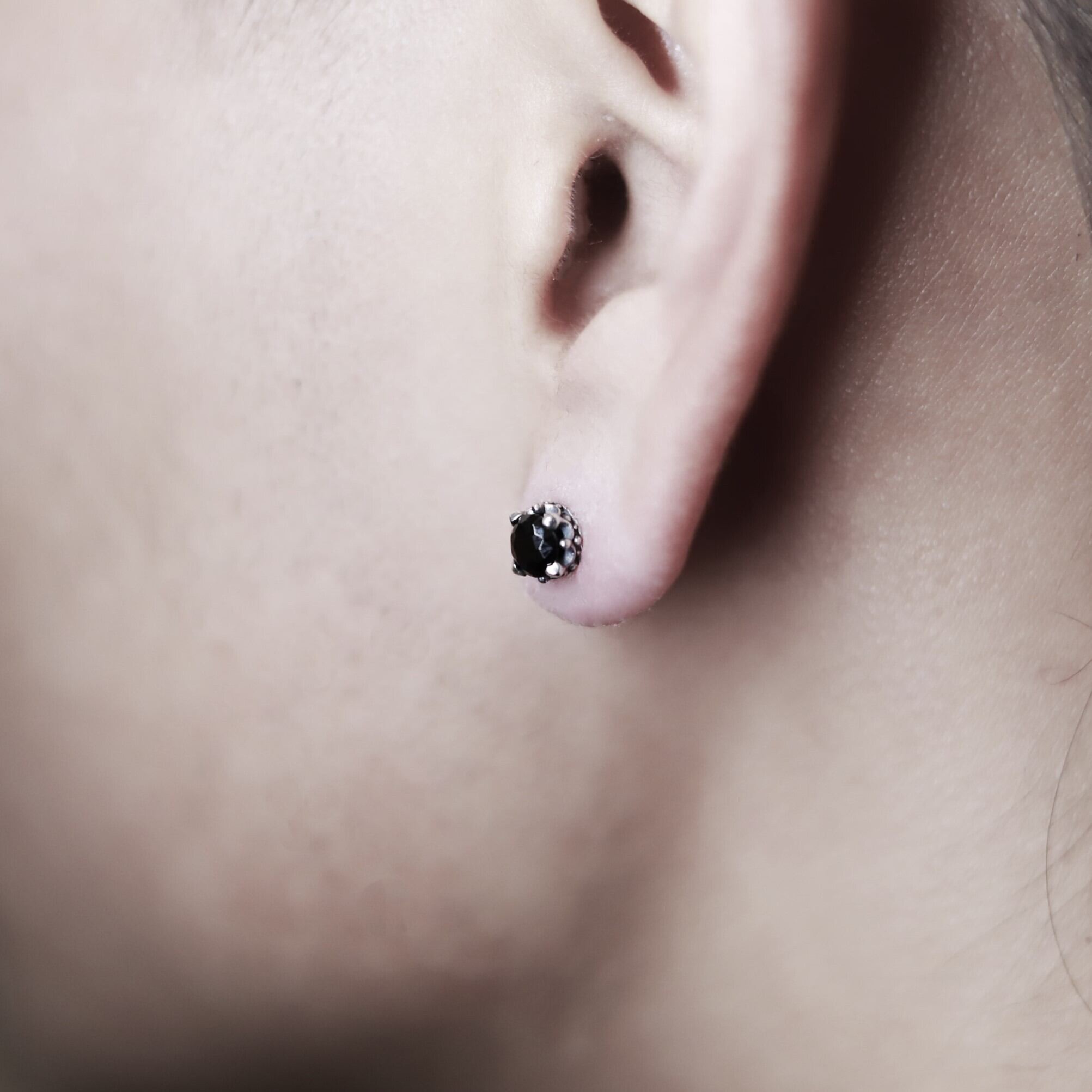 ■ シンプルなブラックがアクセントのピアス。耳元をさりげなく彩り、ブラックカラーで引き締まります。