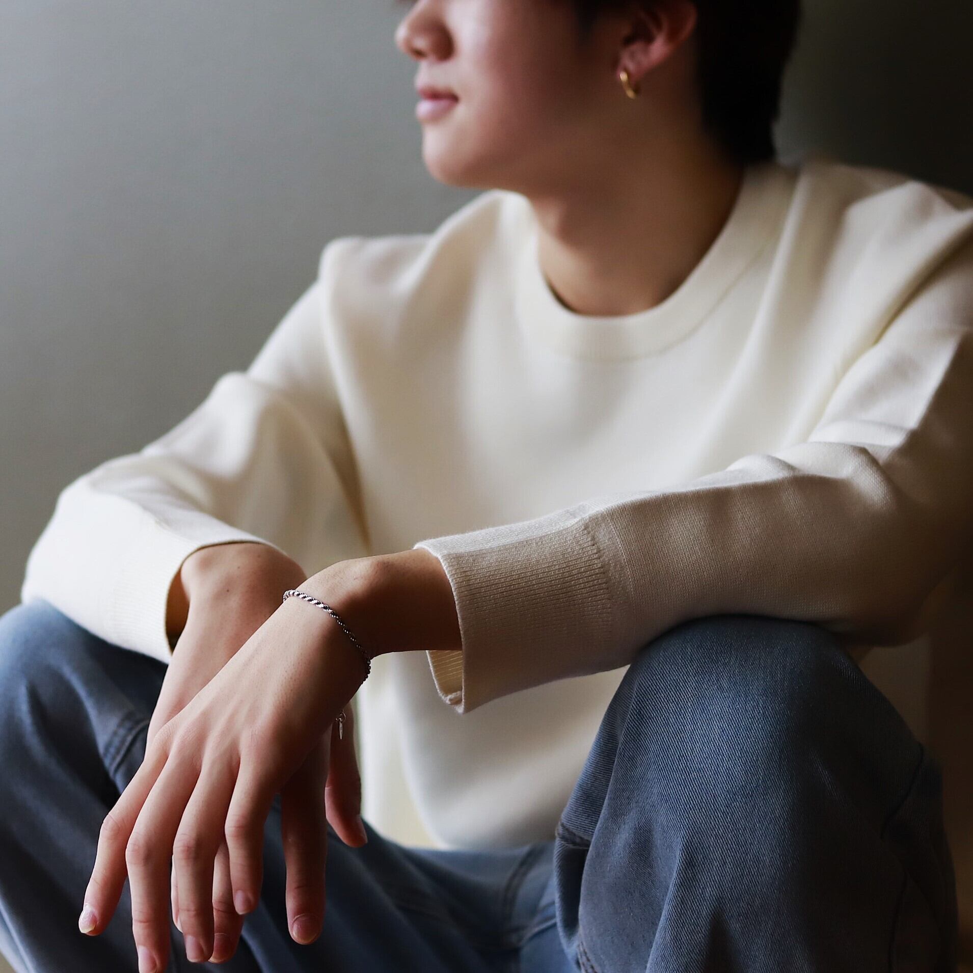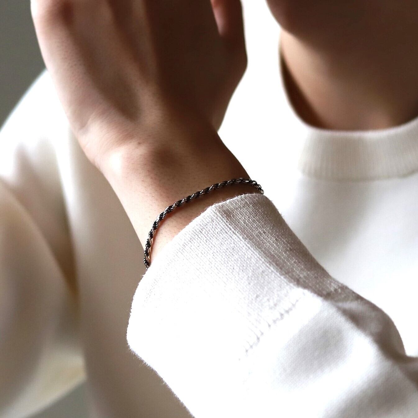 ■ シンプル細身のロープチェーンブレスレット。いぶしが効いているのでこなれ感も演出できます。