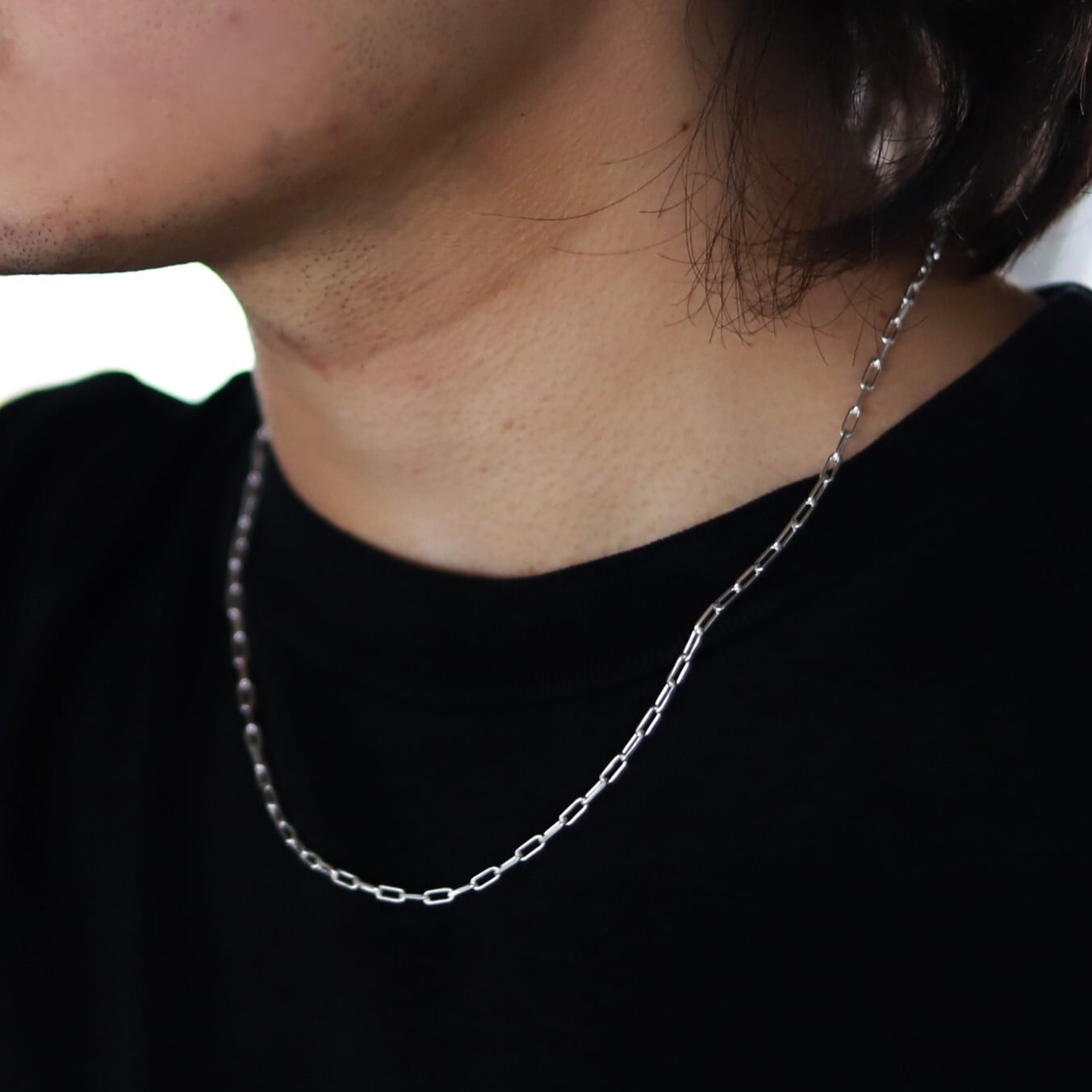 ✅太さ2.5mmの2面カットの長あずきチェーンです。キレイ目好きなファッションの方にもお勧めします。