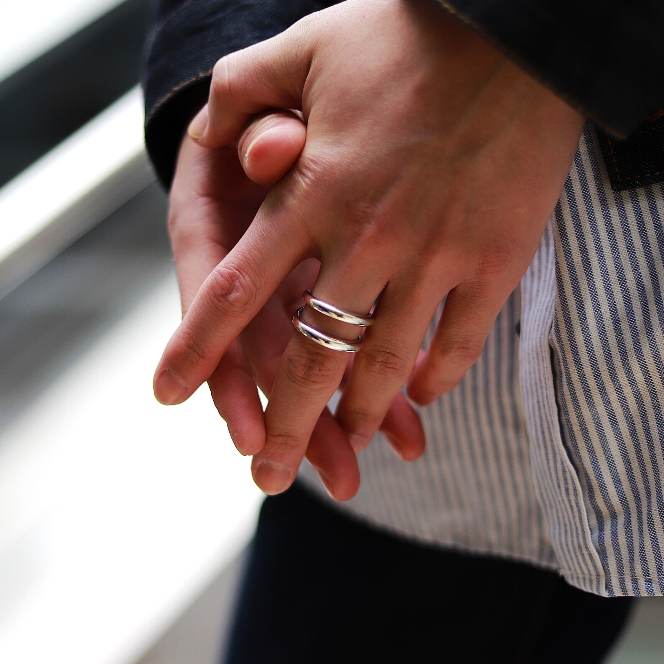 ■ 厚みや重みもしっかりあり全体にボリュームもあるリングですが、肌が見える面積が多いデザインなので上品に見えます。リングを2本着けているように見えるのもオシャレです。