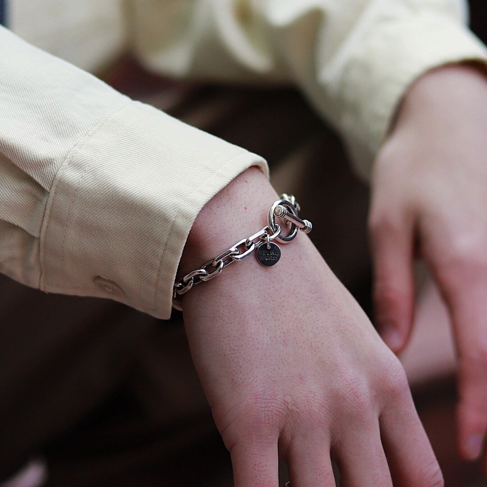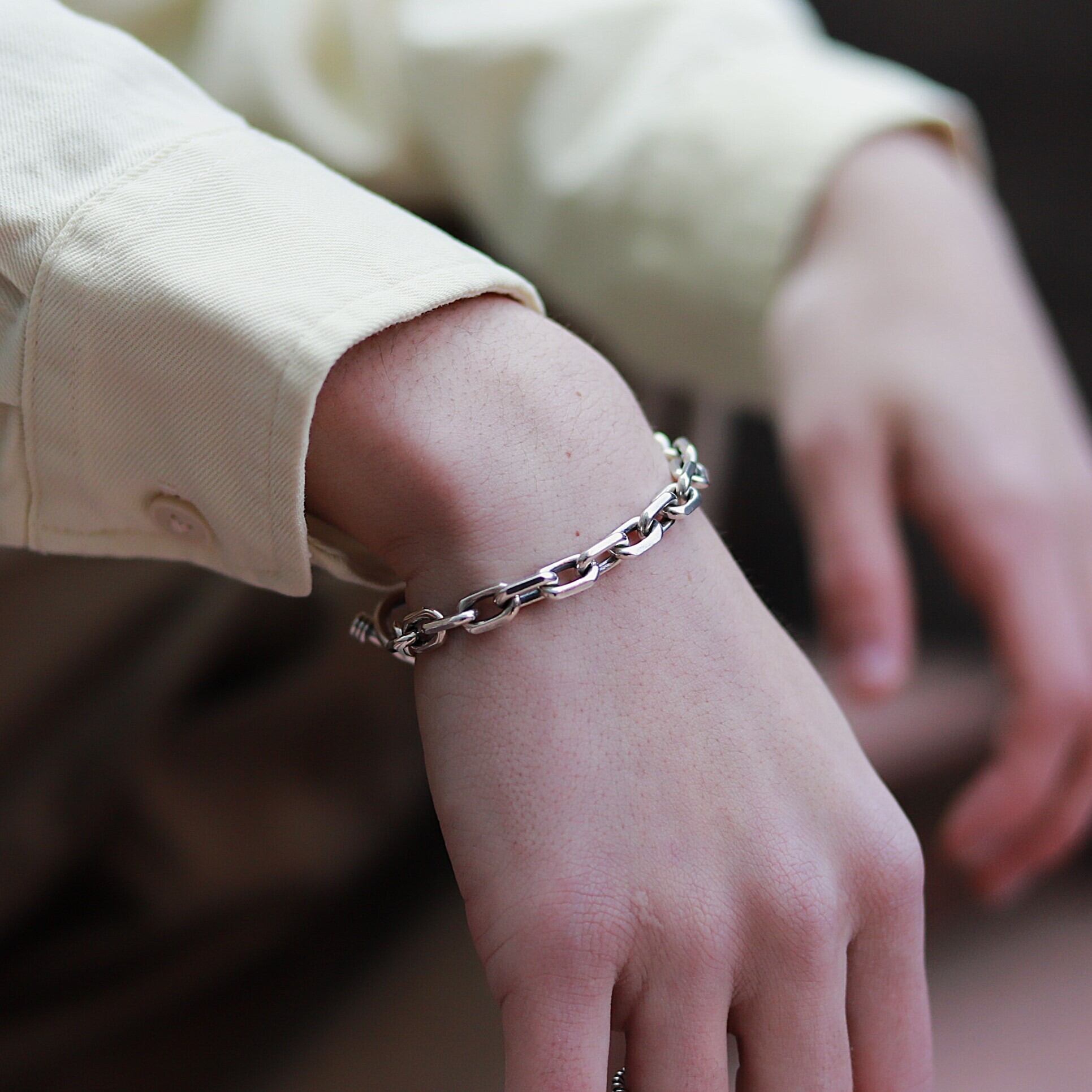 【使うほどヴィンテージに】F.H. シルバーブレスレット(あずきチェーン 8mm):#B025-19cm