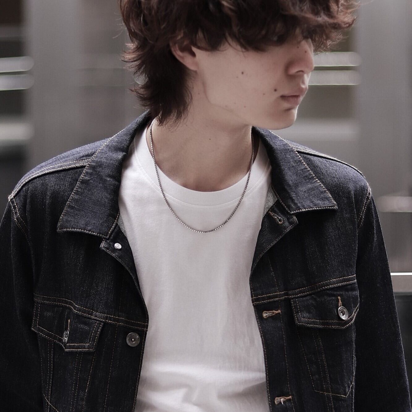 ボックス型の金具を連ねたベネチアンチェーンです。直線的なメンズっぽいシルエットも細みの幅で品よくスタイリッシュ。