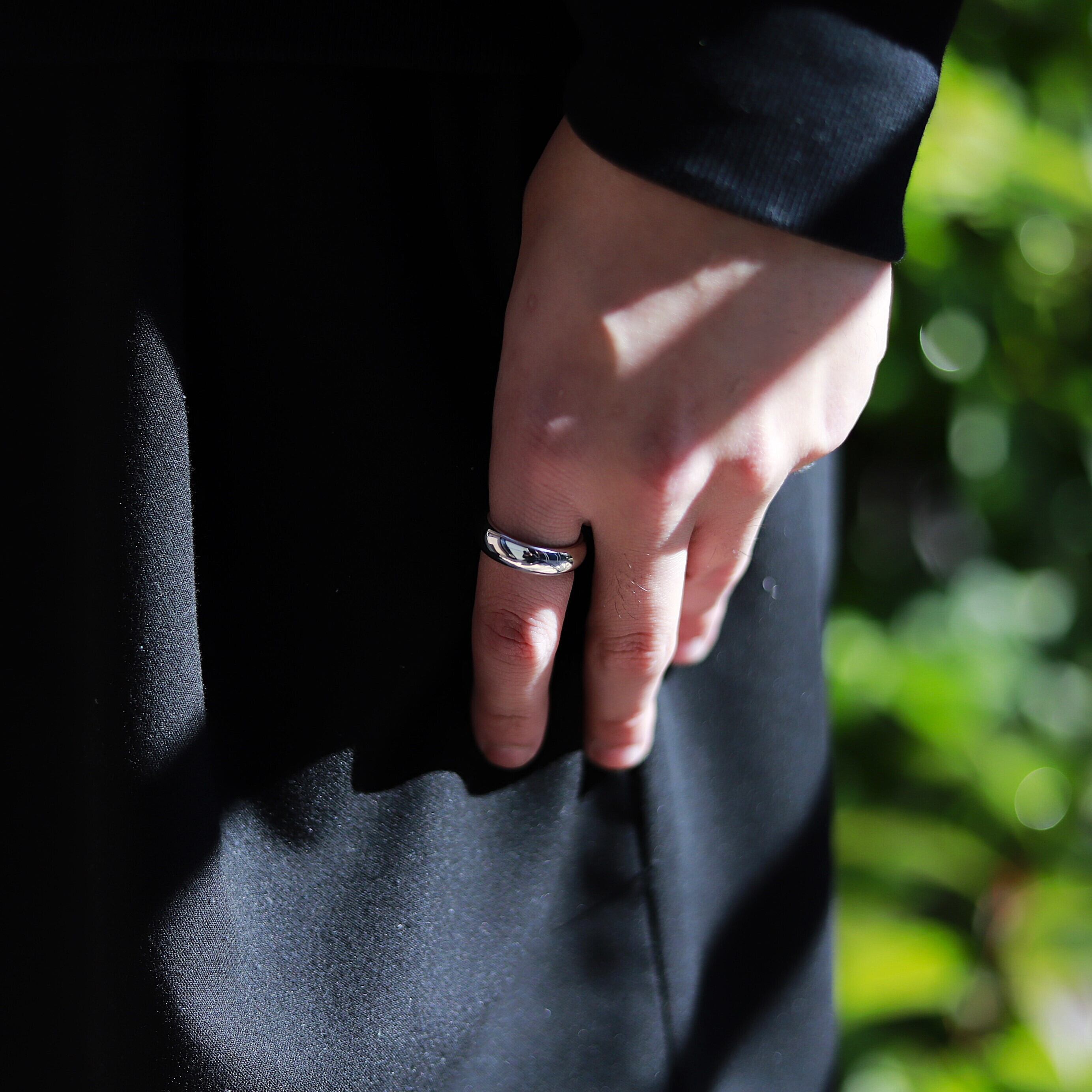 ■ リング表面がゆるやかにカーブしぷっくりとした丸みが印象的な甲丸リング。幅と厚みのバランスにこだわり、何度も試作を繰り返し完成までに約半年を要したリングです。